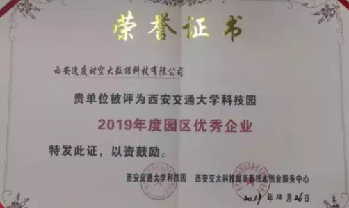 西安交通大学科技园是创新创业人才培养、科技成果转移转化、科技型企业孵化的重要基地。此次西安速度时空大数据科技有限公司获得西交大科技园“2019年度园区优秀企业”的称号,不仅是对2019年西安速度时空大数据科技有限公司所做成果的肯定,也是对速度中国未来发展的激励和鞭策。